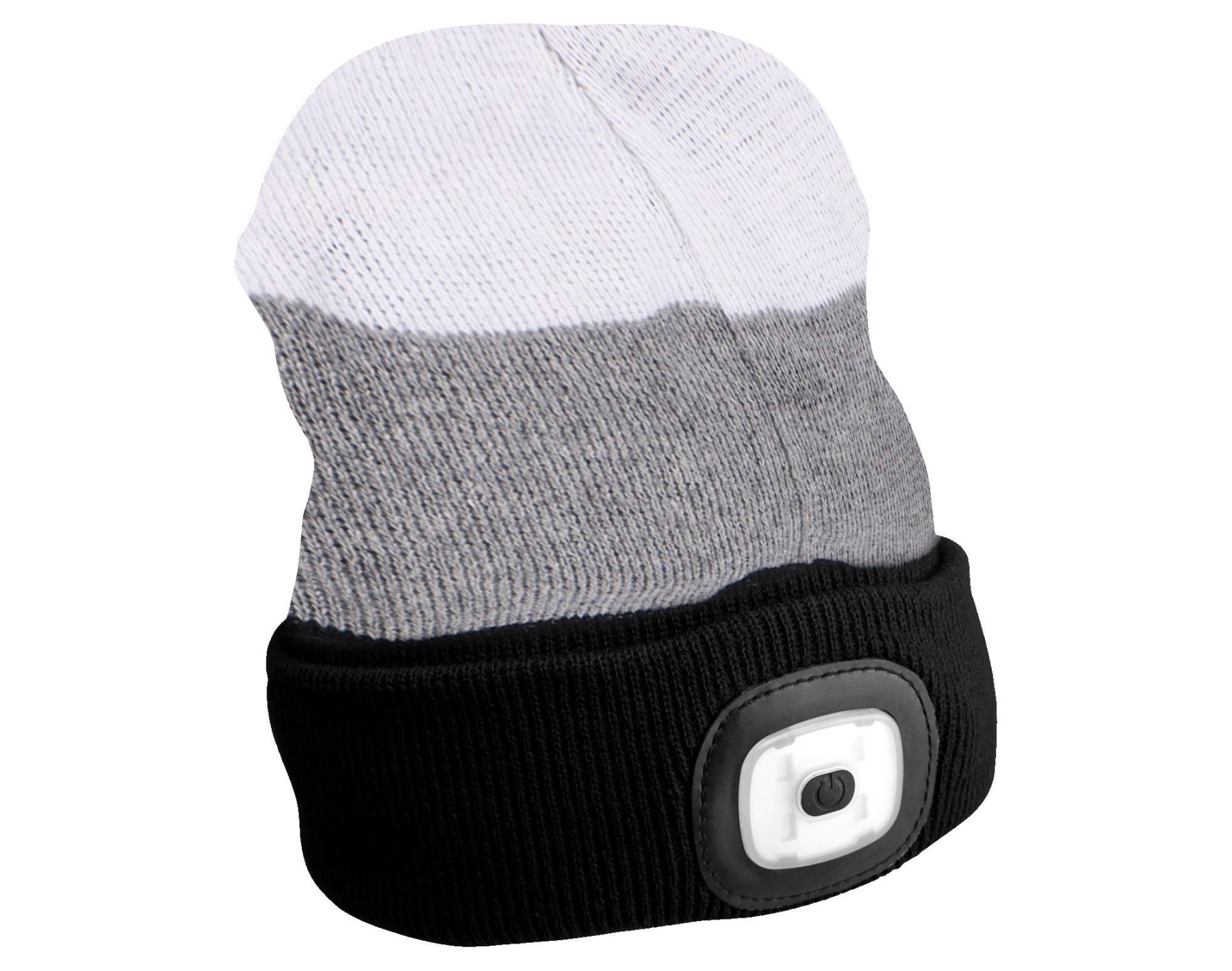 Čepice s čelovkou 180lm, nabíjecí, USB, univerzální velikost, bavlna/PE, černá/šedá/bílá