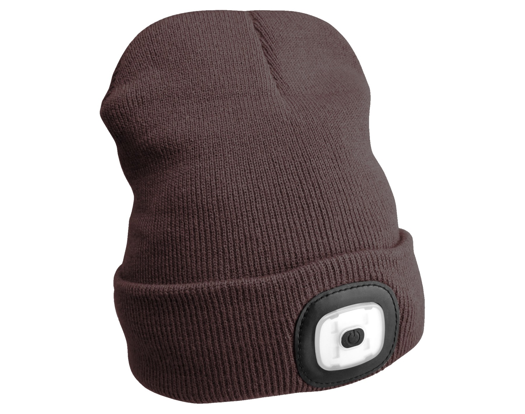 Čepice s čelovkou 180lm, nabíjecí, USB, univerzální velikost, bavlna/PE, hnědá