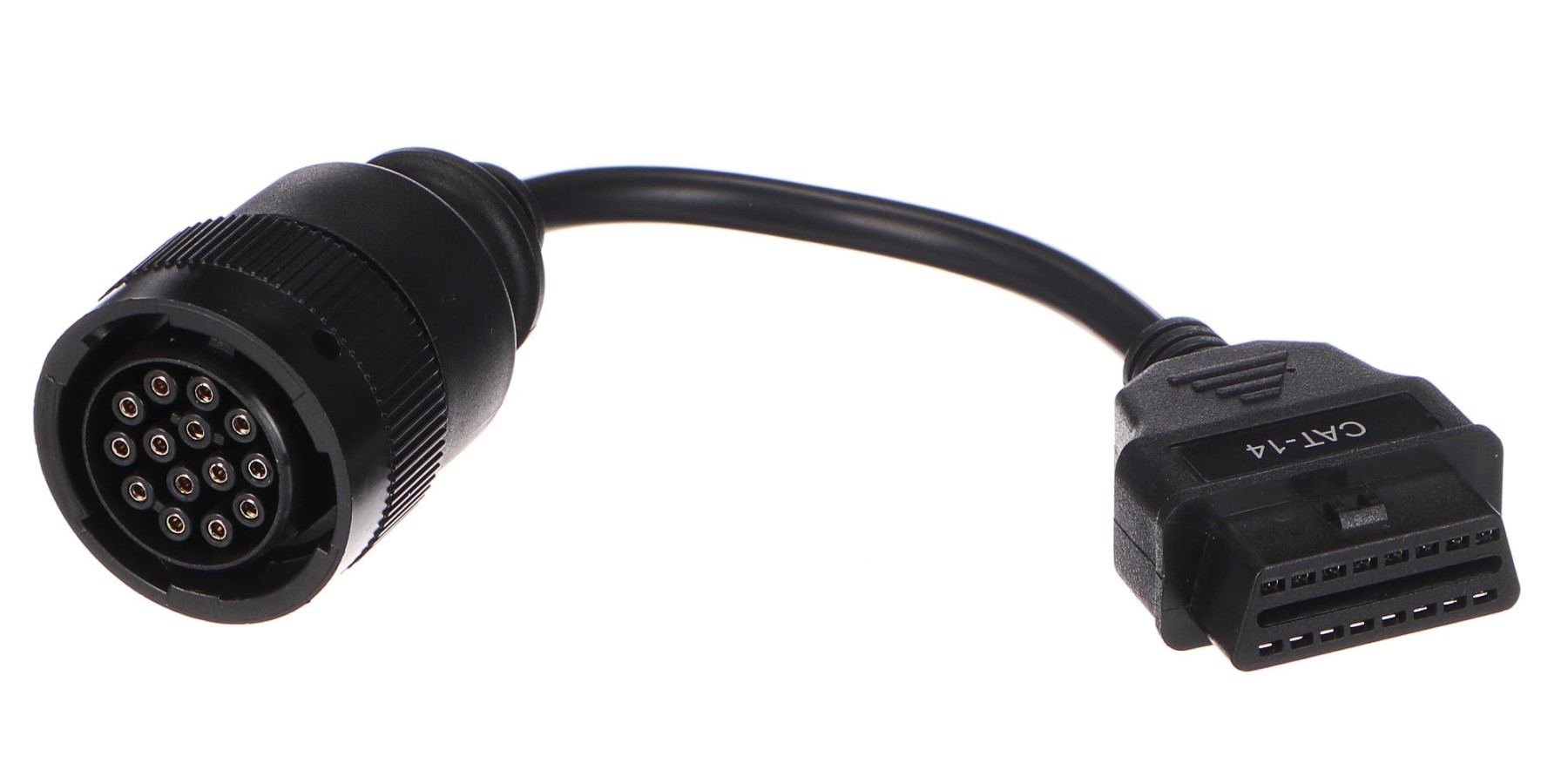 Tato OBD-II redukce je určena speciálně pro vozy CAT Caterpillar. Slouží k propojení 14-pinové zásuvky u vozů CAT Caterpillar se standardní 16-pinovou OBD-II zástrčkou.