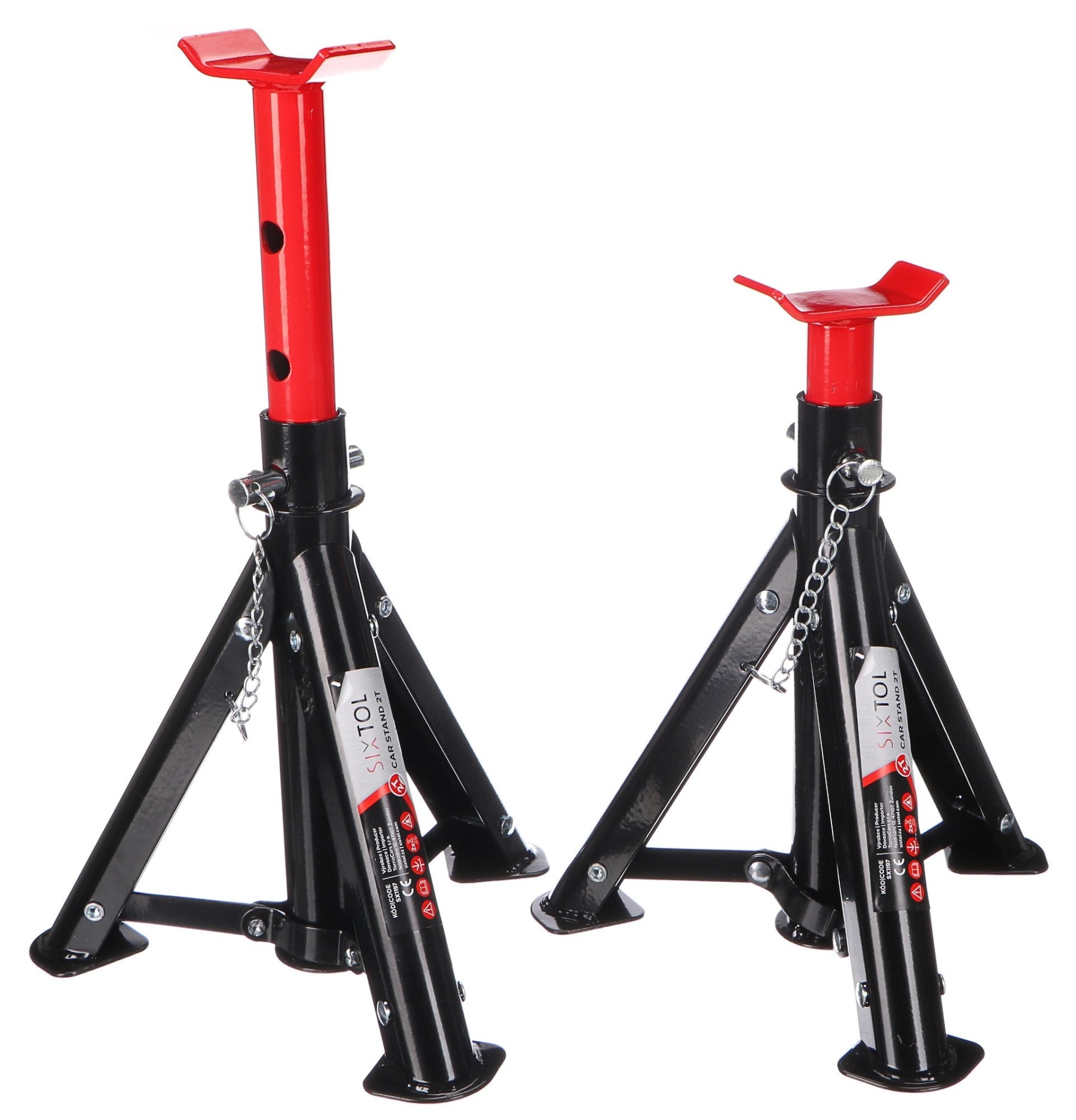 Stabilní podstavce pod auto MECHANIC CAR STAND slouží k zajištění a podepření vozu při jeho zdvižení na heveru během oprav nebo přezouvání kol. Podstavce poskytují nosnost až do 2 tun, což umožňuje zvedání a podepření většiny osobních i lehkých nákladních vozidel. Udávaná nosnost 2 tuny se vztahuje na použití dvou podstavců, tudíž z důvodu bezpečnosti je nutno použít vždy oba. Jsou vyrobeny z oceli a mohou dosáhnout výšky od 266 mm až do 360 mm. Zajištění závlačkami zaručí, že podstavce zůstanou pevně na svém místě, čímž se minimalizuje riziko nechtěného sklouznutí. Díky tomu, že je podstavec skládací, je snadno přenosný a ušetří místo ve vašem voze nebo dílně.