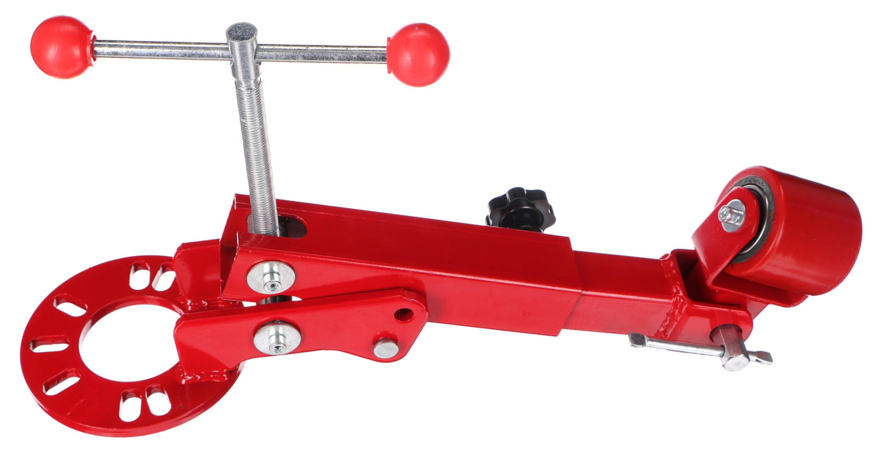 Přípravek na opravu lemů blatníků SIXTOL MECHANIC FENDER 1 je robustní nástroj určený k rovnání nebo rozšiřování podběhů a lemů karoserie u osobních vozidel. Slouží především k úpravám po drobných nehodách, ale i k přípravě vozidla na montáž širších pneumatik nebo sportovní úpravy podvozku. Zařízení se montuje přímo na náboj kola pomocí 4 nebo 5 šroubů, čímž se zajišťuje přesné vedení i stabilita při práci. Výsuvné rameno s nastavitelným sklonem a polohovatelným válcem s gumovým povrchem umožňuje přesnou kontrolu tlaku bez poškození karoserie. Díky variabilní konstrukci je přípravek použitelný pro širokou škálu osobních vozidel.