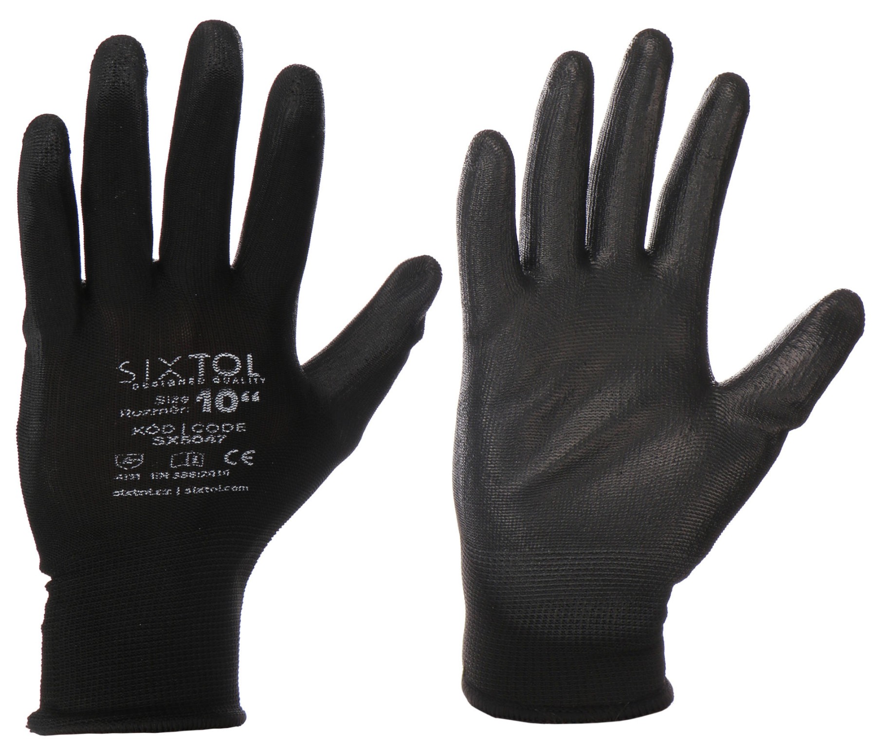 Pracovní rukavice z polyesteru polomáčené v polyuretan SIXTOL GLOVE PE-PU 10, černé, velikost 10" SIXTOL