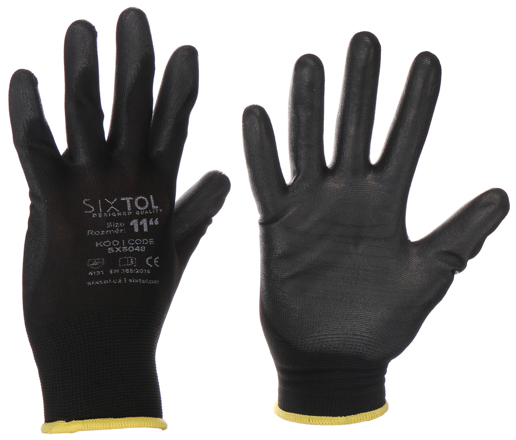 Pracovní rukavice z polyesteru polomáčené v polyuretanu SIXTOL GLOVE PE-PU 11, černé, velikost 11" SIXTOL