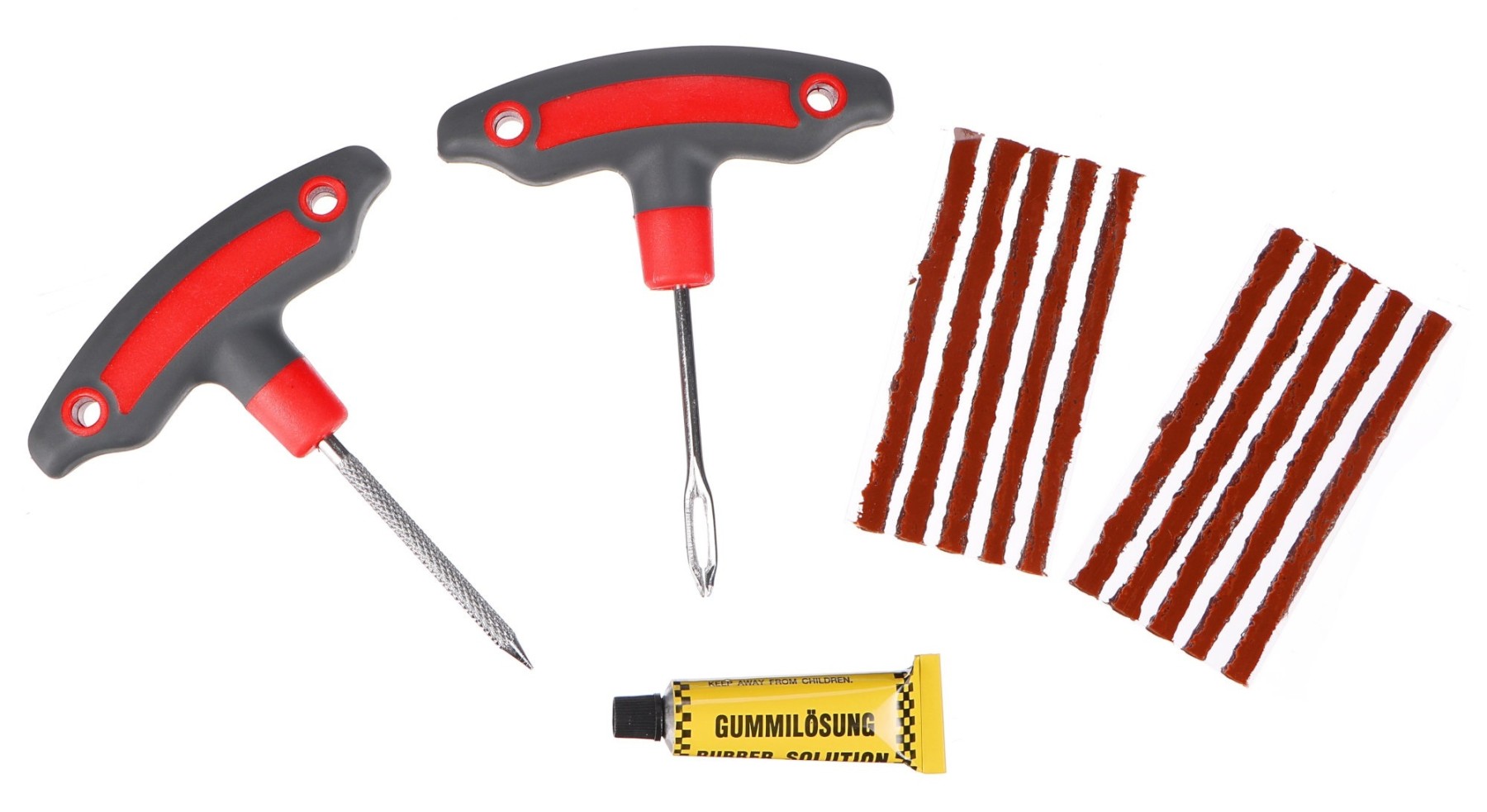Sada na opravu defektu pneumatiky CAR TIRE REPAIR SET 3 je nezbytným pomocníkem každého řidiče. Umožní vám snadno, rychle a dočasně vyřešit nečekaný defekt bez nutnosti navštívit servis bez ohledu na to, zda jste na dlouhé cestě, v práci nebo doma.Návod k použití: Najděte místo, kde je pneumatika propíchnutá, případně odstraňte předmět, který způsobil defekt. Do otvoru zasuňte průtažník a následně ho protahujte směrem nahoru a dolu - do doby než bude snadno procházet otvorem - tímto je otvor vyčištěn a připraven. Knot zbavený ochranné fólie provlékněte otvorem vidlice a naneste na něj vulkanizační roztok. Zastrčte vidlici s nasazeným knotem do otvoru tak, aby jeho polovina zůstala z vnější strany pneu, poté otočte vidlicí a pomalu ji vytáhněte. Odřízněte zbytek knotu co nejblíže k pneumatice.