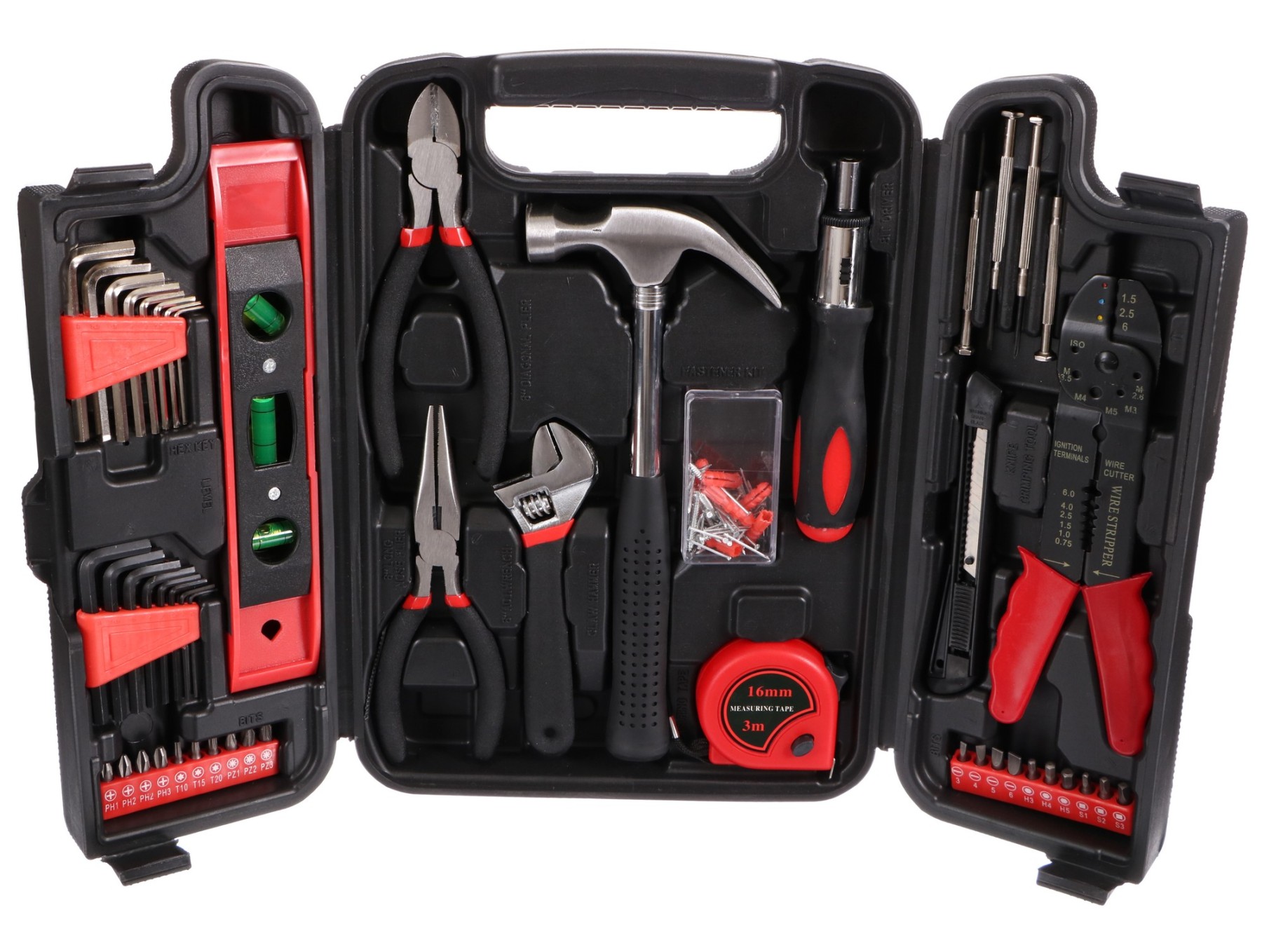 SIXTOL HOME 126 nesmí chybět v žádné domácnosti. V sadě naleznete kleště, vodováhu,