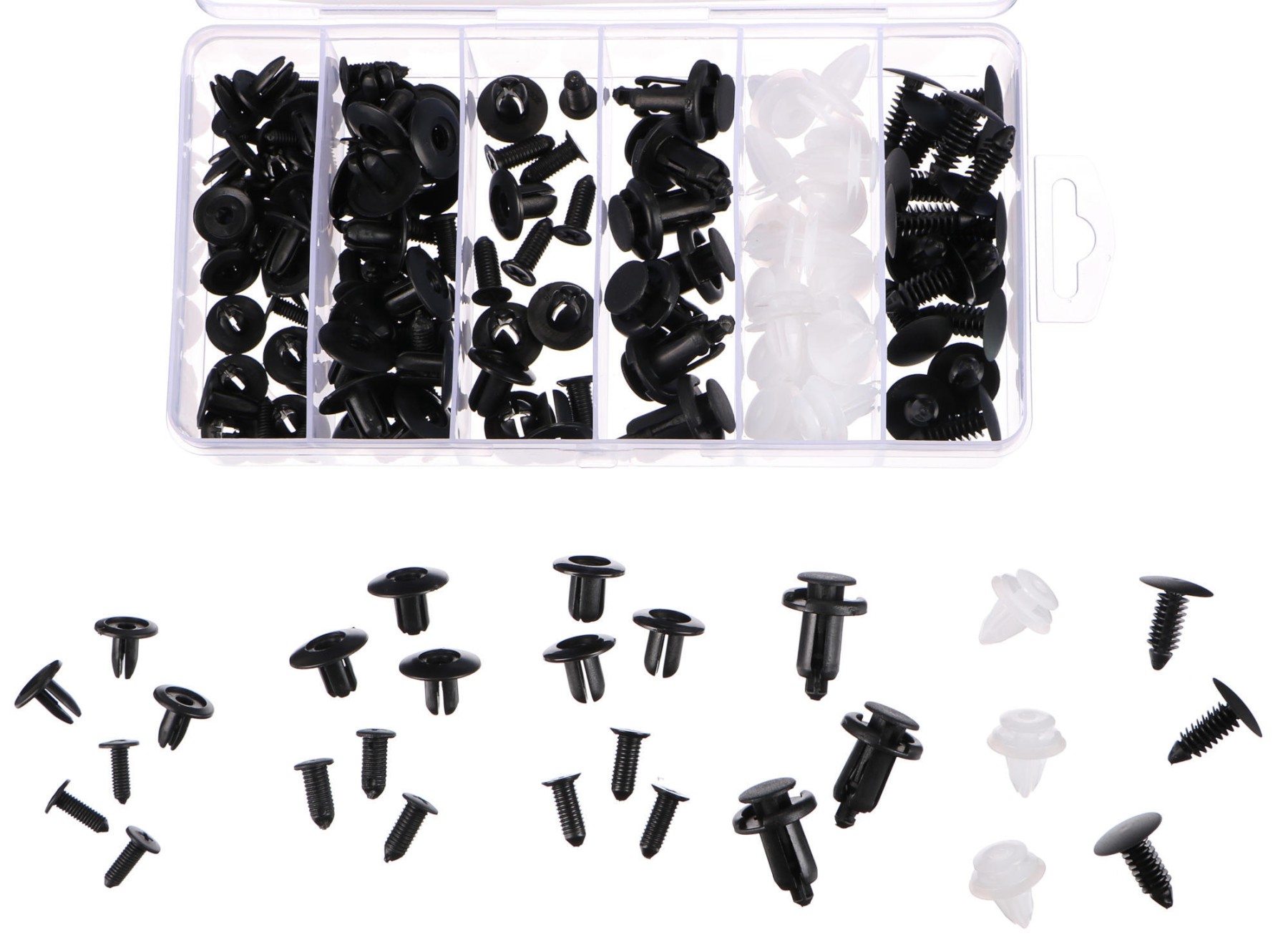 Tato praktická sada obsahuje příchytky a kolíky o 100 kusech pro čalounění vozidel. Jsou ideálním pomocníkem pro všechny profiesionály i domácí kutily při opravě nebo údržbě vozu. Sada je vybavena 6 druhy komponentů o různých velikostech a tvarech, čímž se stává univerzální pro širokou škálu vozidel. Všechny komponenty jsou přehledně uspořádány v prakitckém plastovém boxu, což usnadňuje jejich skladování a přepravu.