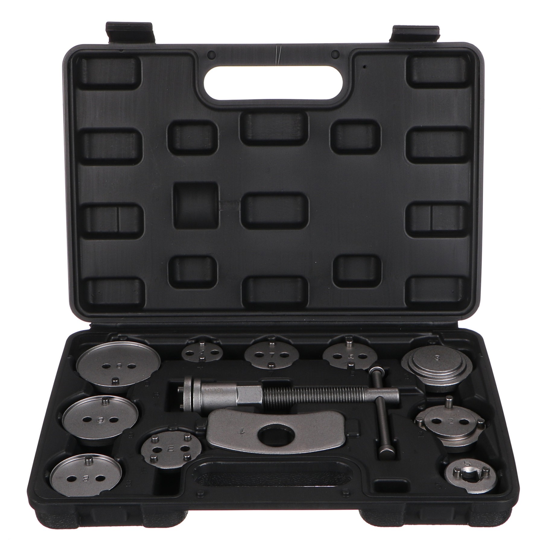 Univerzální sada stlačováků brzdových pístů BRAKE SET BLACK s 12 díly v černém plastovém kufru vhodná