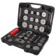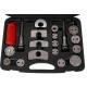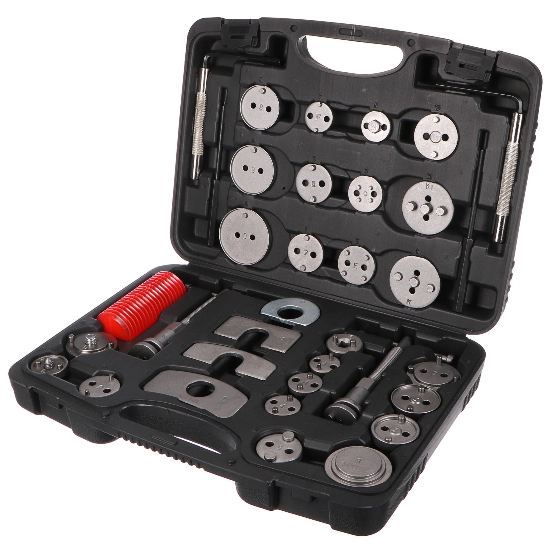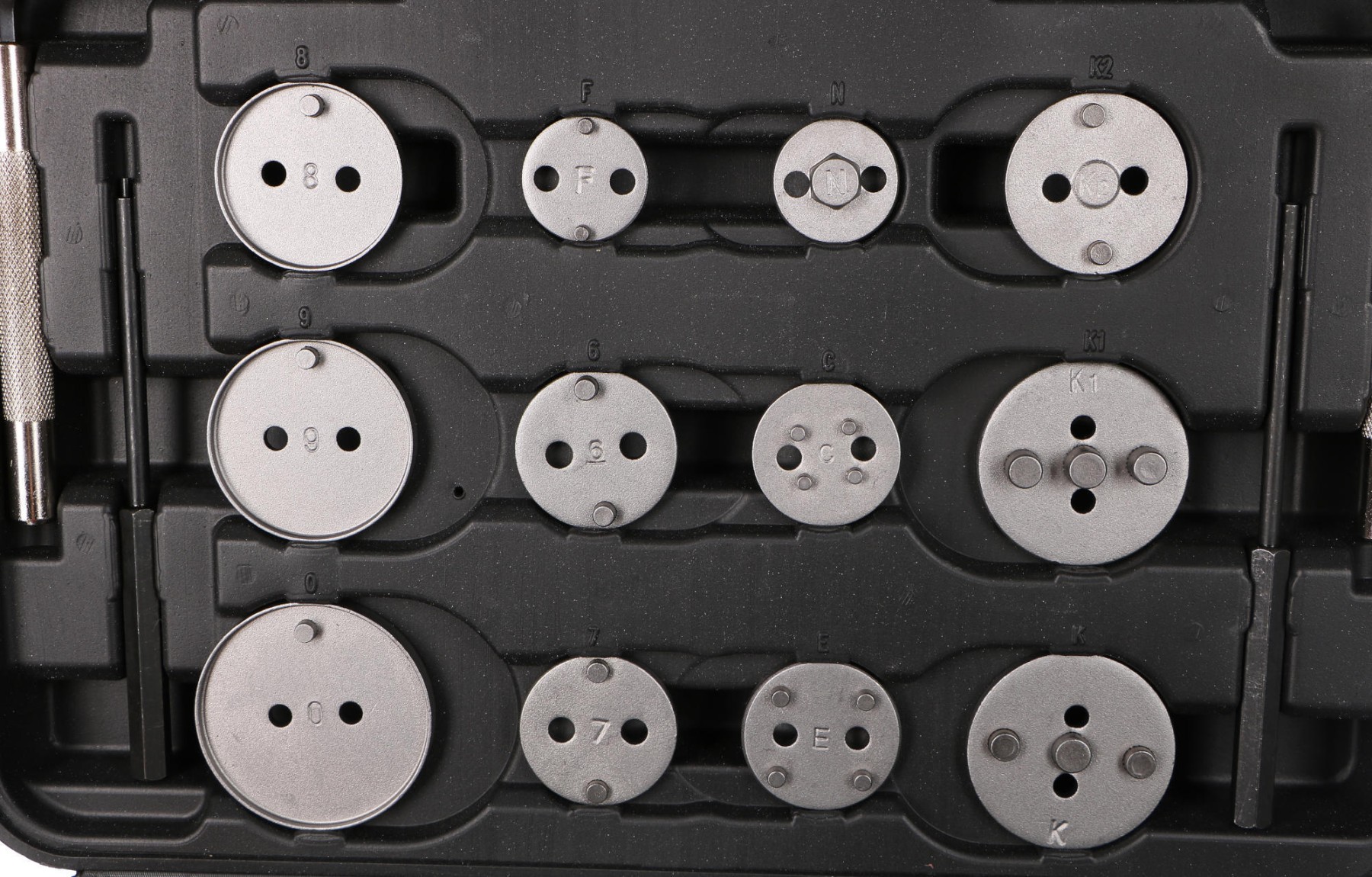 pravotočivou i levotočivou stlačovací závitnici s magnetem, čtyři dorazy, dva imbusové klče, úderníky, nádobku na mazivo a 24 různých adaptérů. U vozidel s třmeny kotoučových brzd a s integrovanou jednotkou ruční brzdy se zpětné vracení brzdových pístů provádí zpětným otáčením, u ostatních vozidel zpětným stlačením těchto pístů.