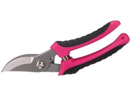 Ergonomická rukojeť s TPR povrchem je navržena tak, aby poskytovala pohodlný a pevný úchop pro vaše ruce, což snižuje únavu při delším používání. Růžová barva rukojeti přidává osobitý styl a příjemnou atmosféru do vaší zahrady. Tyto nůžky jsou všestranným pomocníkem pro mnoho různých úloh v zahradě.